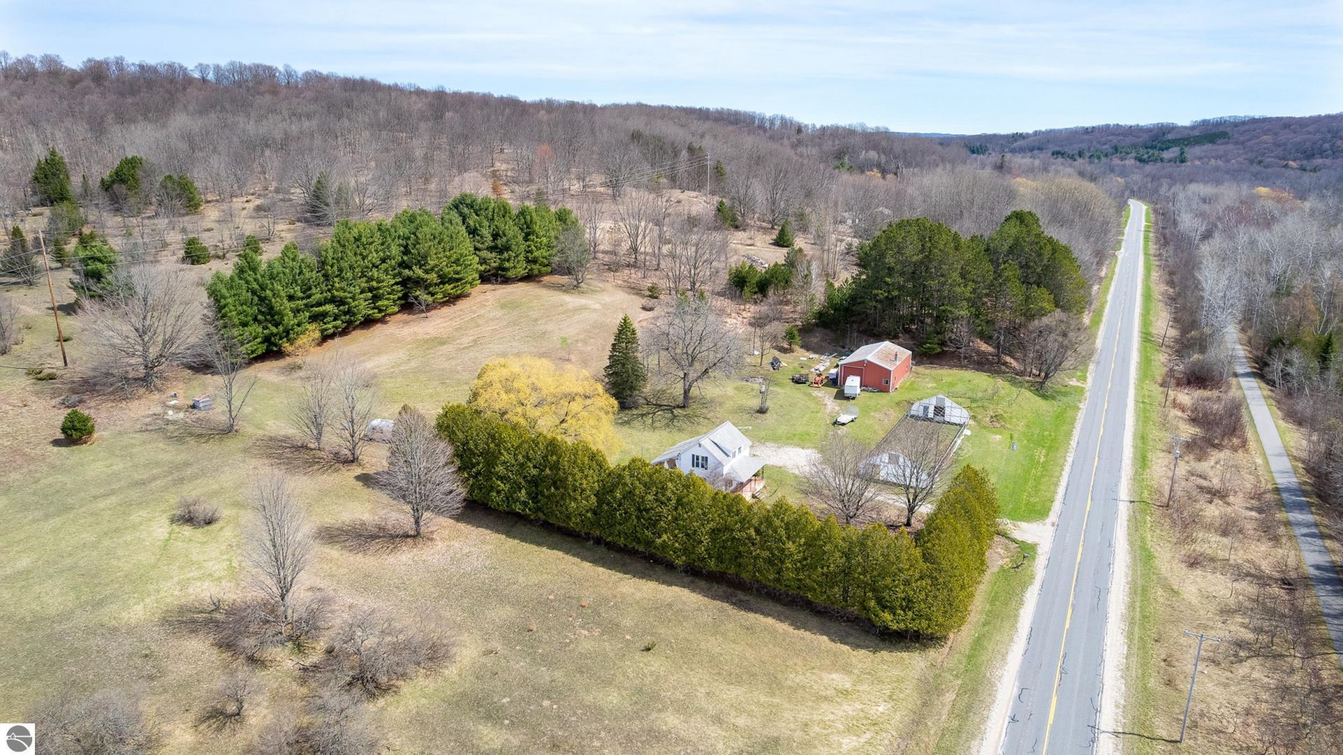 Discover a rare opportunity to create your dream homestead just outside the city limits of Frankfort. Situated on 3.68 picturesque acres, this farmhouse property offers provides rural charm and proximity to some of northern Michigan???s most beloved destinations. Located directly across from the scenic Betsie Valley Trail, you???ll enjoy easy access to biking and walking paths leading into Downtown Frankfort, Elberta, Beulah with Crystal Lake and Lake Michigan access. The property is well-equipped for hobbyists, outdoor enthusiasts, or those seeking a self-sustaining lifestyle. A large pole barn provides ample space for equipment, vehicles, and recreational toys, while the expansive greenhouse is already outfitted with water and electricity offers incredible potential for year-round gardening with just the addition of a cover. A welcoming covered front porch as you step inside to find the home has been fully taken down to the studs, presenting a true blank canvas for your vision. The main floor has nice open space to create your living area while original hardwood floors on the upper level and potential to add a second bath. Additional features include RV-ready water and septic hookups, creating an ideal setup for hosting guests or accommodating extended stays. The gently sloping land is adorned with mature trees and offers serene countryside views in every direction. Whether you???re looking to design a modern farmhouse retreat or restore its classic charm, the possibilities are endless. All of this is just minutes from the scenic M-22 corridor and close to the natural beauty of Lake Michigan, Crystal Lake, renowned golf courses, and miles of hiking and biking trails???plus the charm of nearby harbor towns.