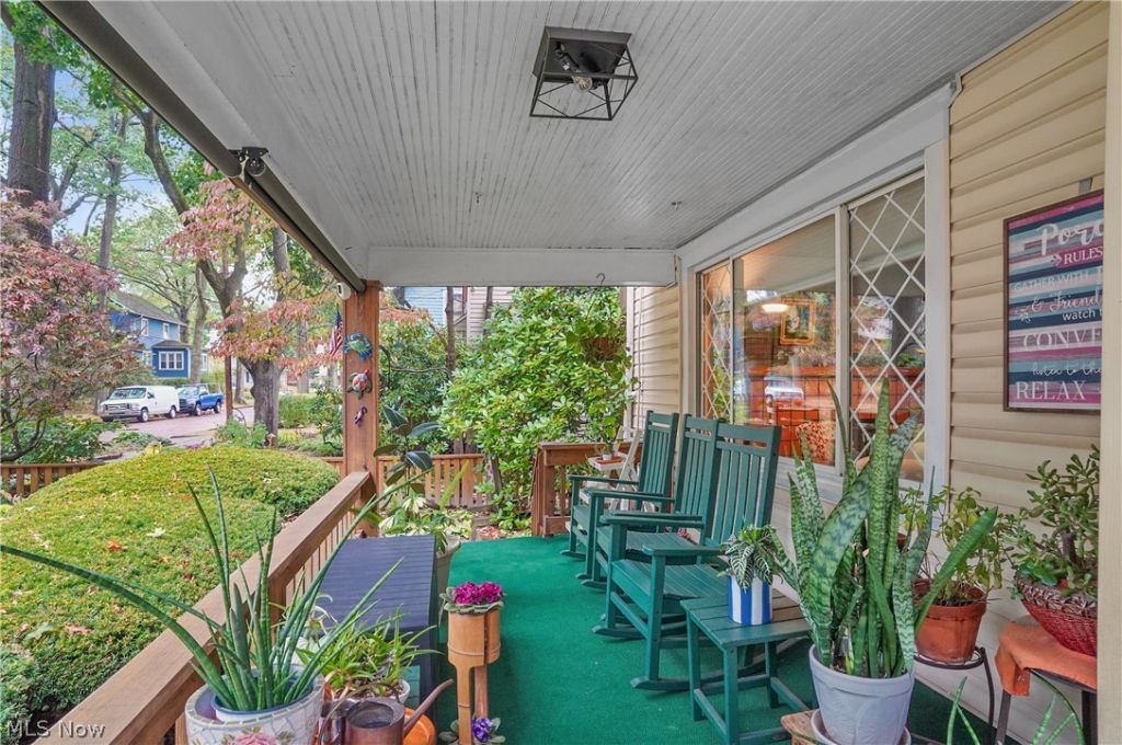 This stunning century home has been thoughtfully customized into a true work of art by an accomplished interior designer. From the charming shake exterior and inviting front porch to the beautifully landscaped yard, every detail creates a warm and memorable first impression. Inside, the foyer showcases unique wallpaper that perfectly complements the home's rich woodwork and exquisite crown molding. The living space features a beautifully tiled fireplace, flanked by built-in bookshelves and also features a cozy window seat?creating an ideal setting for relaxation or entertaining. The space flows seamlessly into the dining room, with ceramic tile extending into the updated kitchen, which boasts granite countertops and a striking tin ceiling. A bright sunroom at the rear of the home offers the perfect spot for a den, office, or breakfast nook. Upstairs, you'll find custom cabinetry in the main hallway, an updated full bathroom, a spacious primary bedroom, and two additional bedrooms. The third floor provides excellent storage potential. The lower level includes a laundry area, half bath, and versatile flex space ideal for a recreation room or entertaining area. Additional features include a one-car attached garage at the rear of the home and a concrete pad for extra parking. Conveniently located near Highland Square, the Dog Park, as well as popular restaurants and shopping, this home offers both character and convenience.